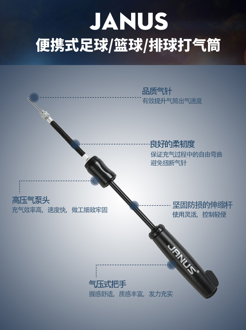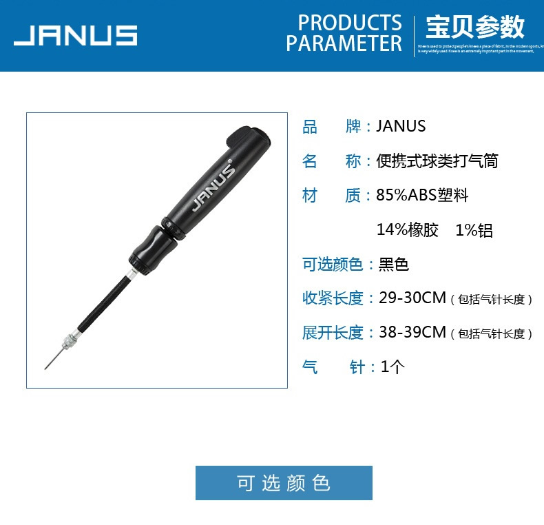 商品名称:JANUS 高压充气筒 篮球排球足球 便携式打气筒 气泵 气针 JA118