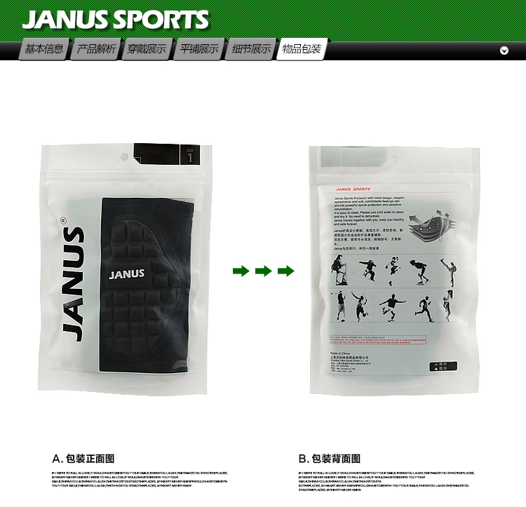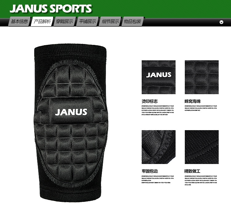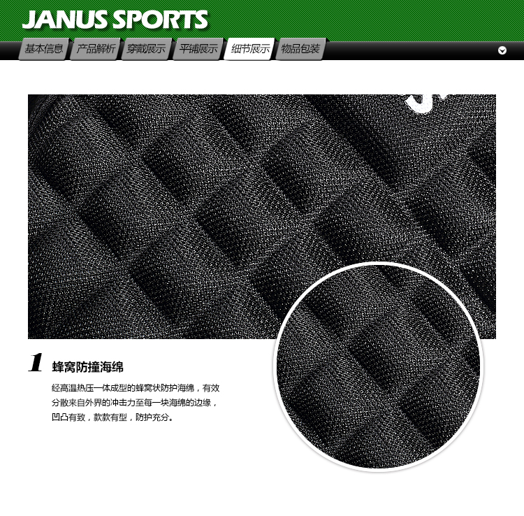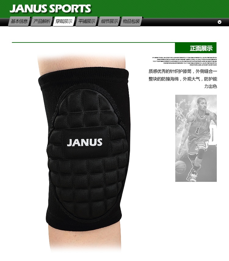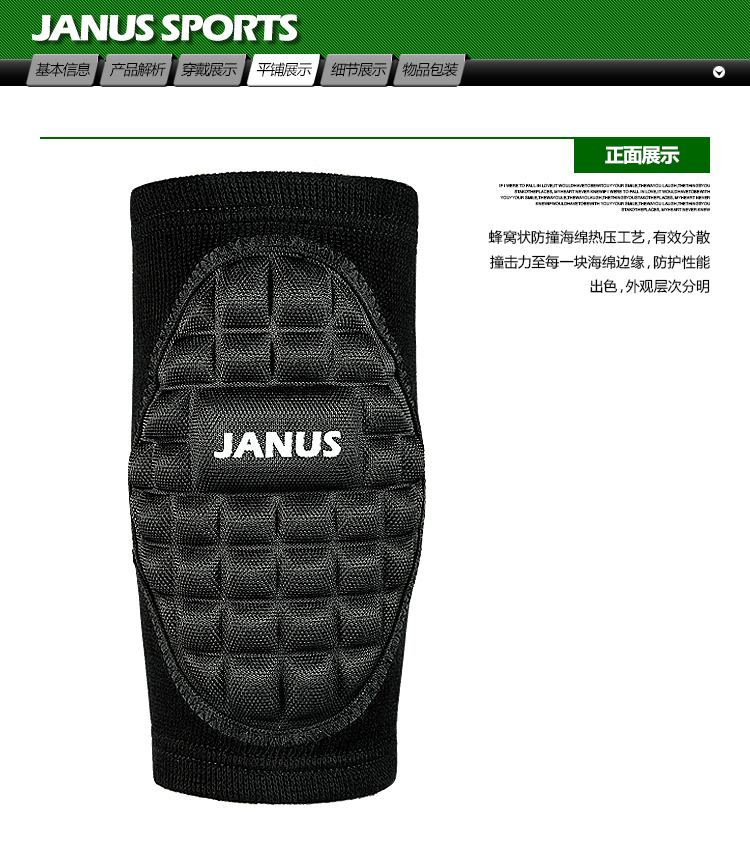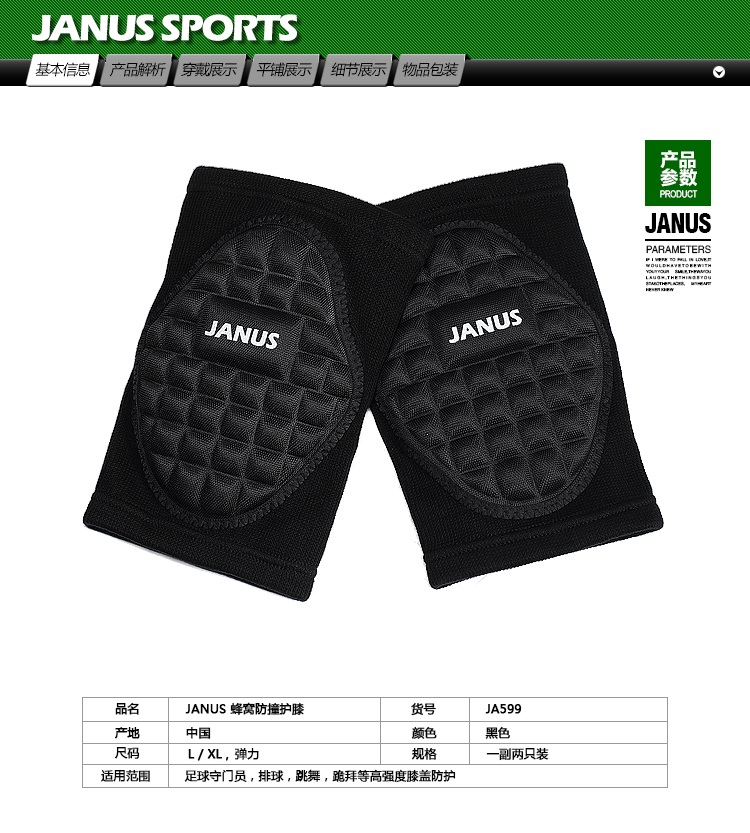 商品名称:JANUS 蜂窝海绵 排球街舞守门员 专业加厚防撞 护膝盖护腿 JA599