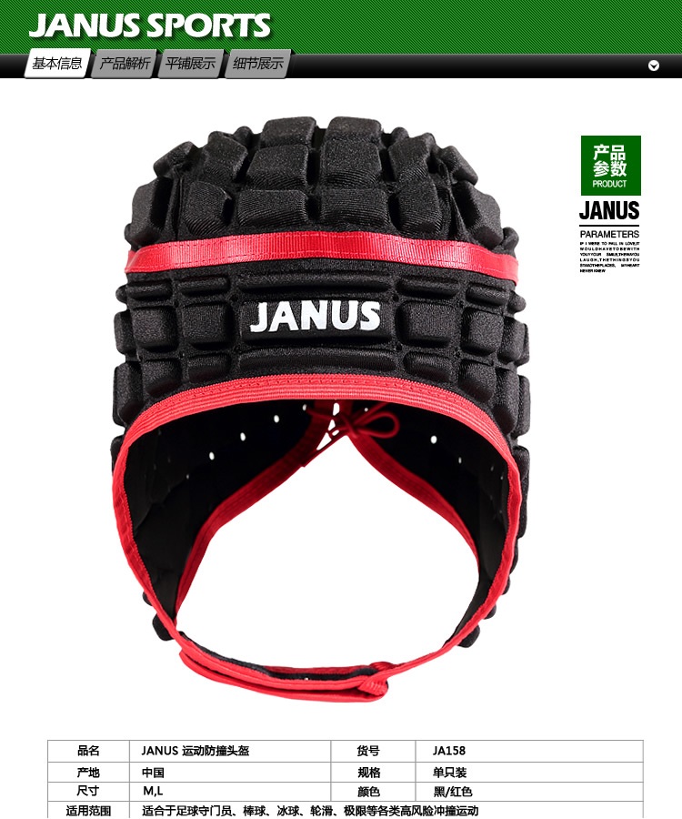 商品名称:JANUS 加厚防撞海绵 足球守门员头盔门将帽 橄榄球轮滑帽子 JA158