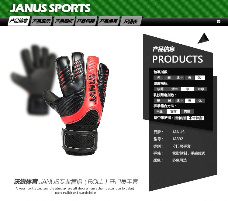 商品名称:JANUS 专业管指 儿童成人 足球守门员手套 门将手套 JA392