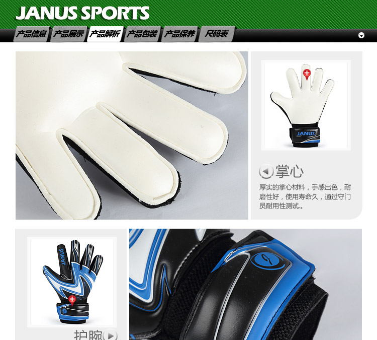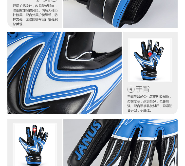 JANUS 蜂翼系列 专业全乳胶 带护指 守门员手套 门将手套 JA375