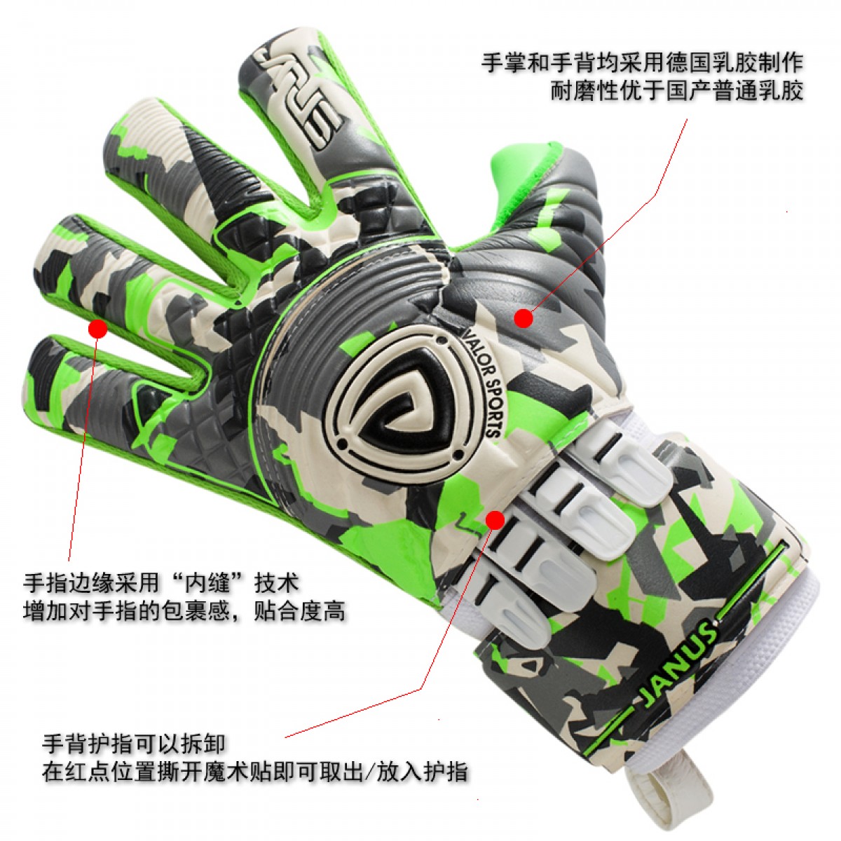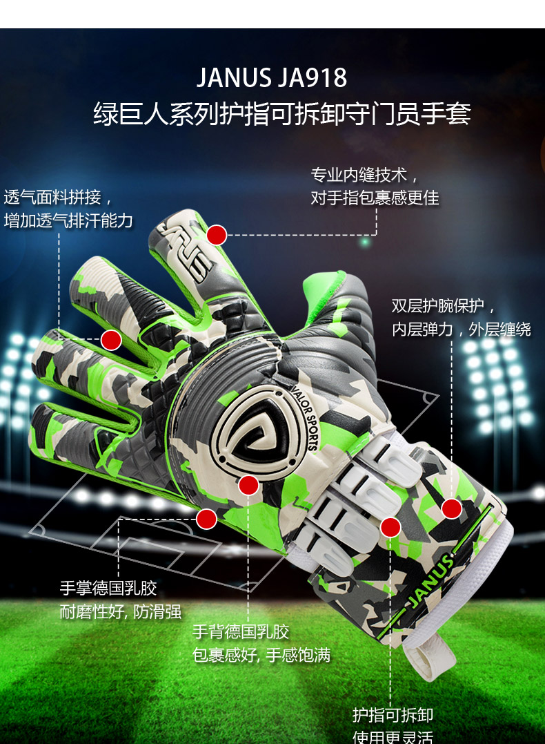 JANUS 全乳胶护指可拆卸 内缝 成人足球守门员手套门将手套 JA918