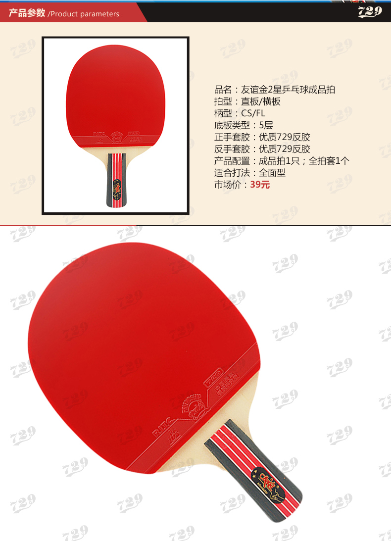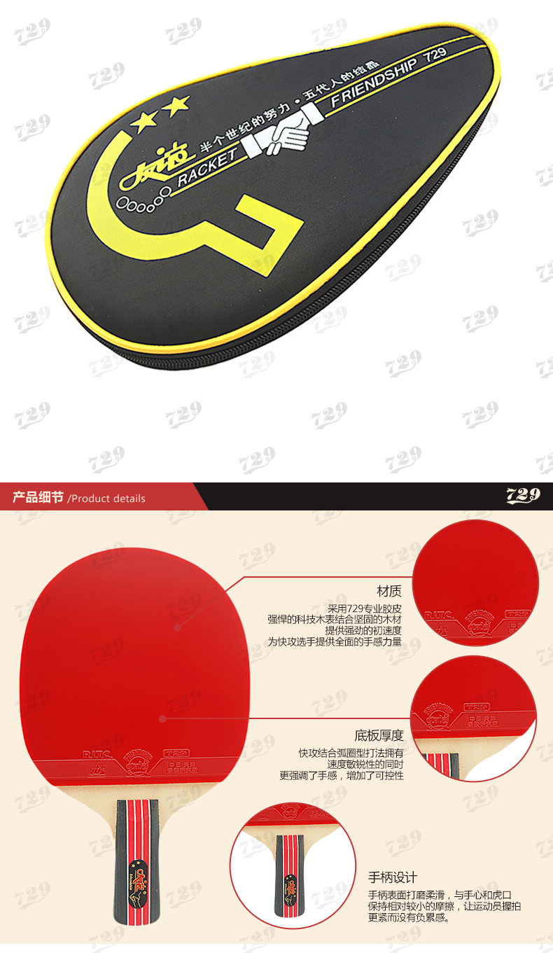 商品名称:729 友谊系列 金二星 成品拍 金2星 乒乓球拍 一支装
