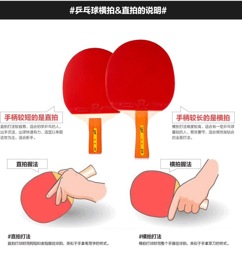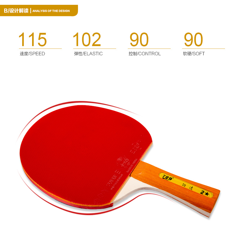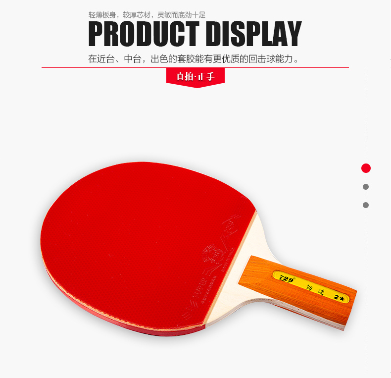 商品名称:729 全能型劲速2星乒乓球拍 成品拍 横拍/直拍/单支装