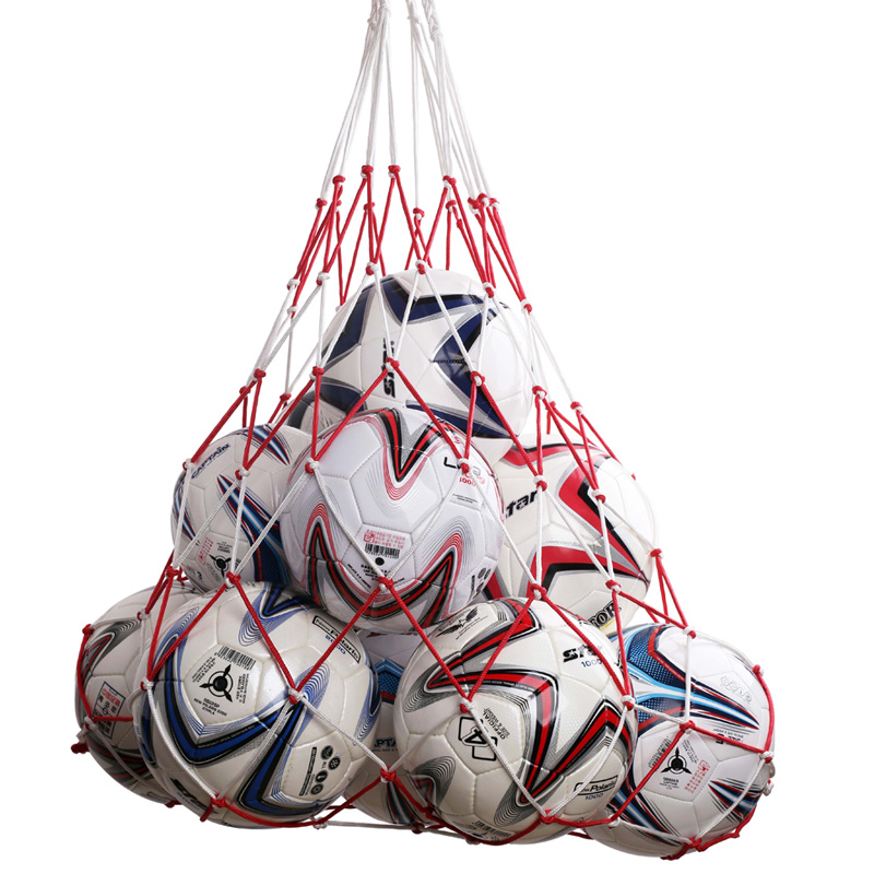此网兜可以装10个足球,排球 ,可以装7-8个左右的篮球。