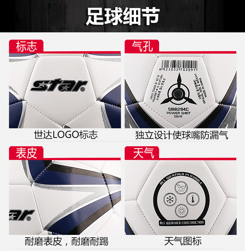 商品名称:Star/世达 足球SB8294儿童4号足球SB8295成人5号训练足球