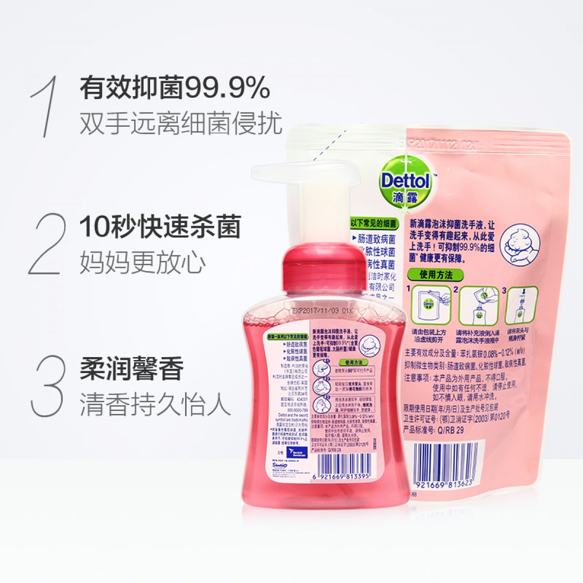 商品名称:滴露 泡沫洗手液 樱桃芬芳抑菌 250ml+225ml*2