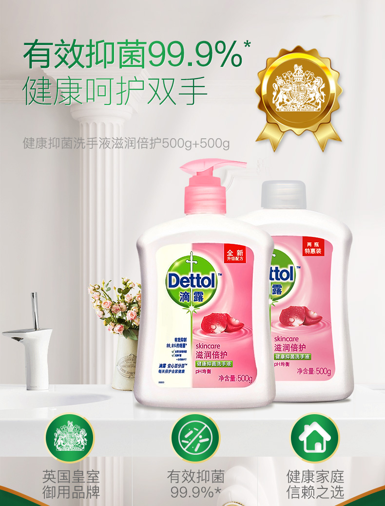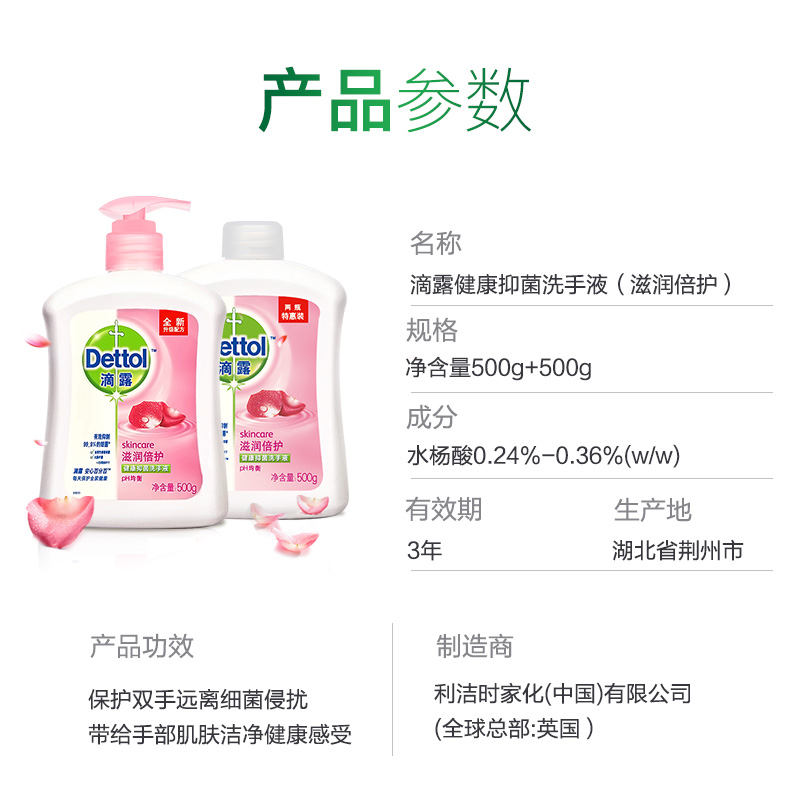 商品名称:滴露 洗手液 健康抑菌滋润倍护 500克+500克