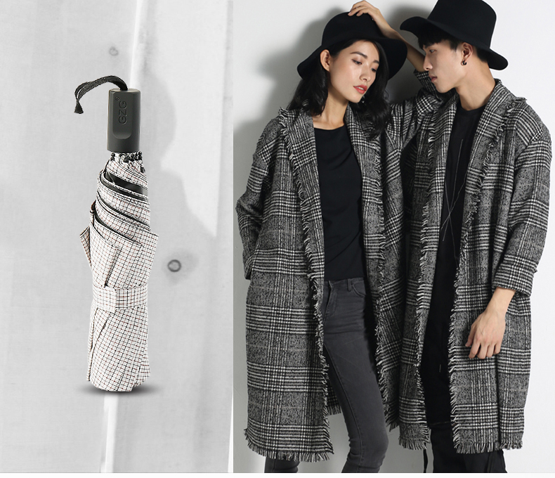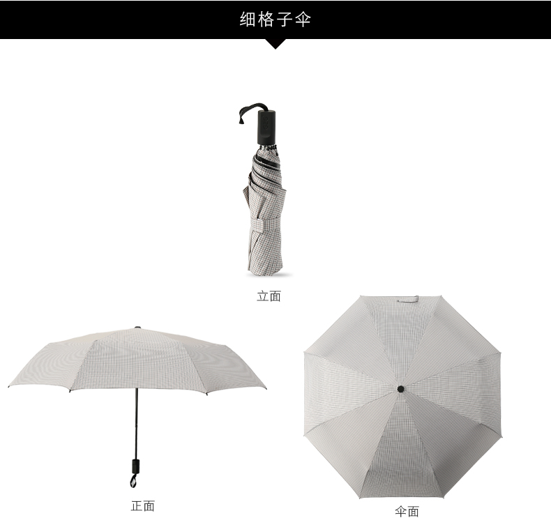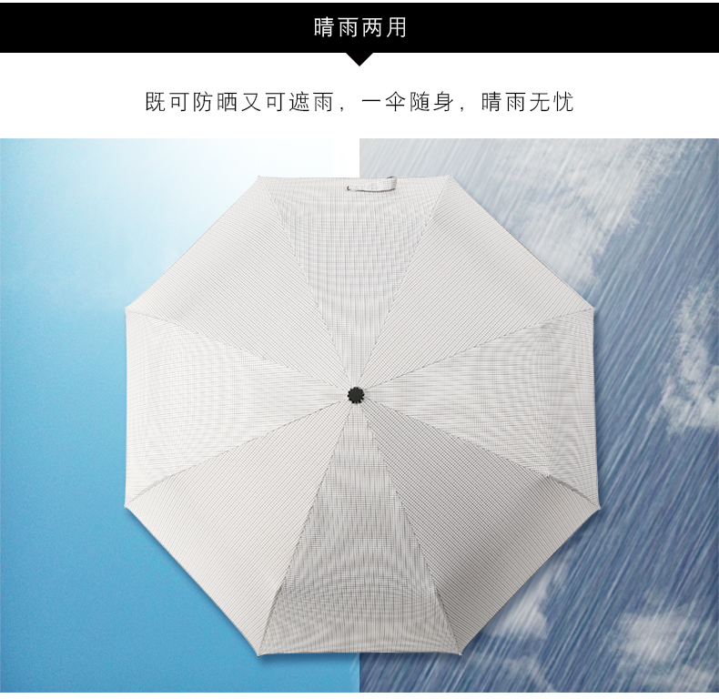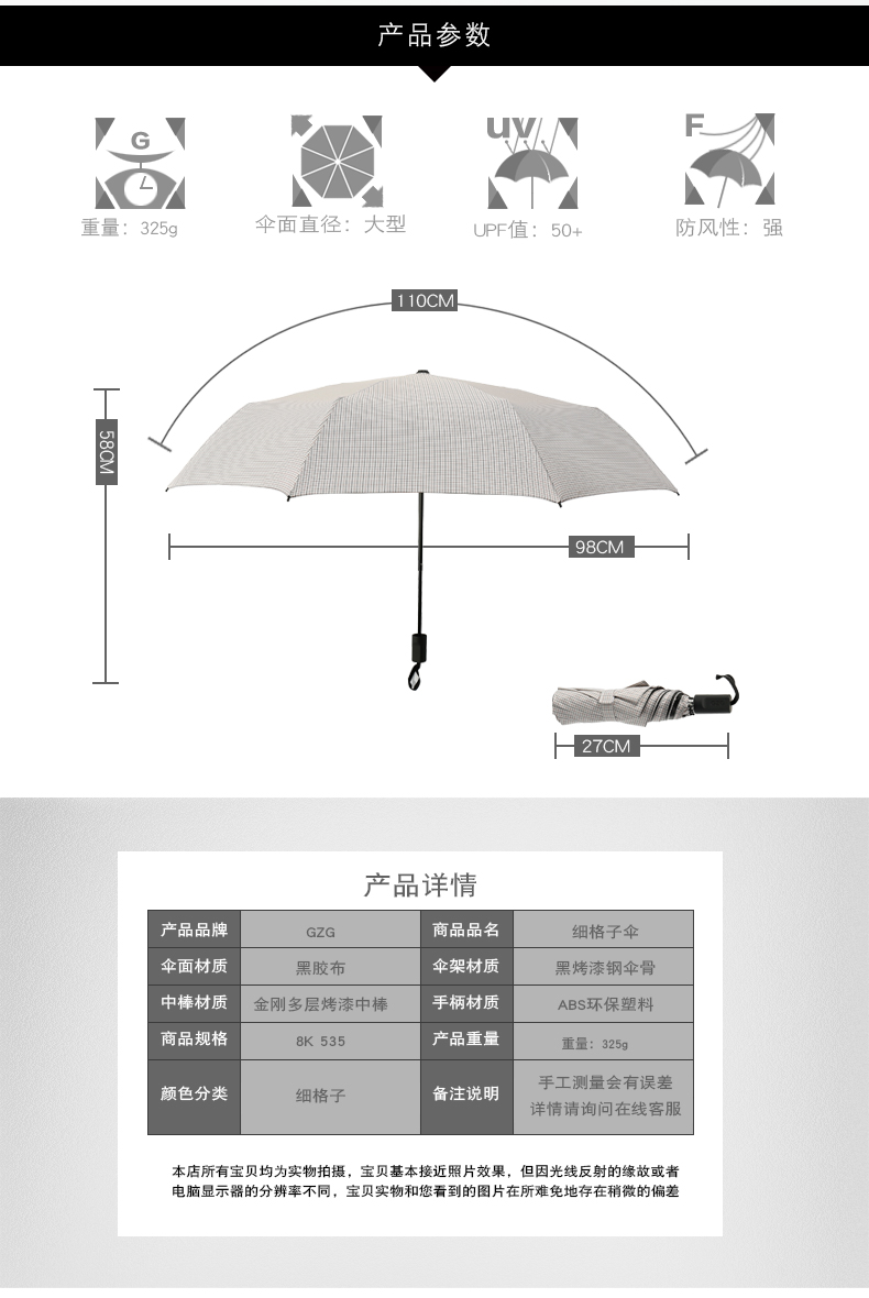 商品名称:GZG 格子雨伞折叠太阳伞女黑胶铅折叠晴雨遮阳伞创意防紫外