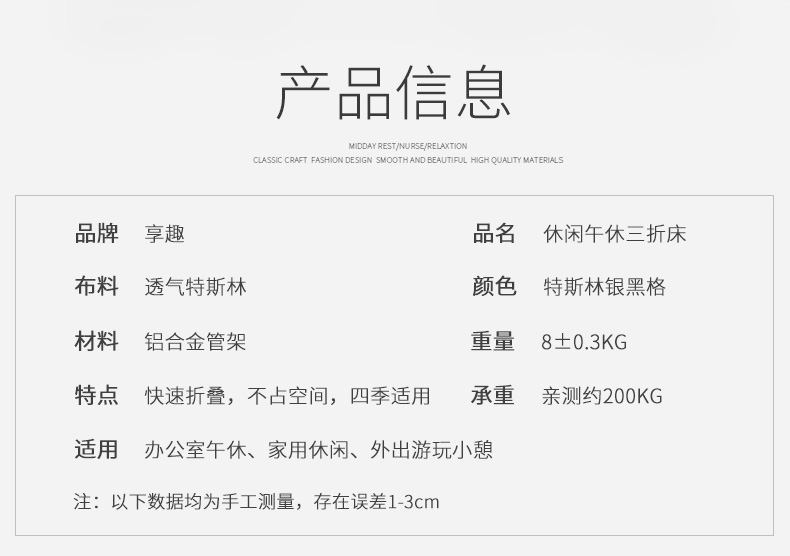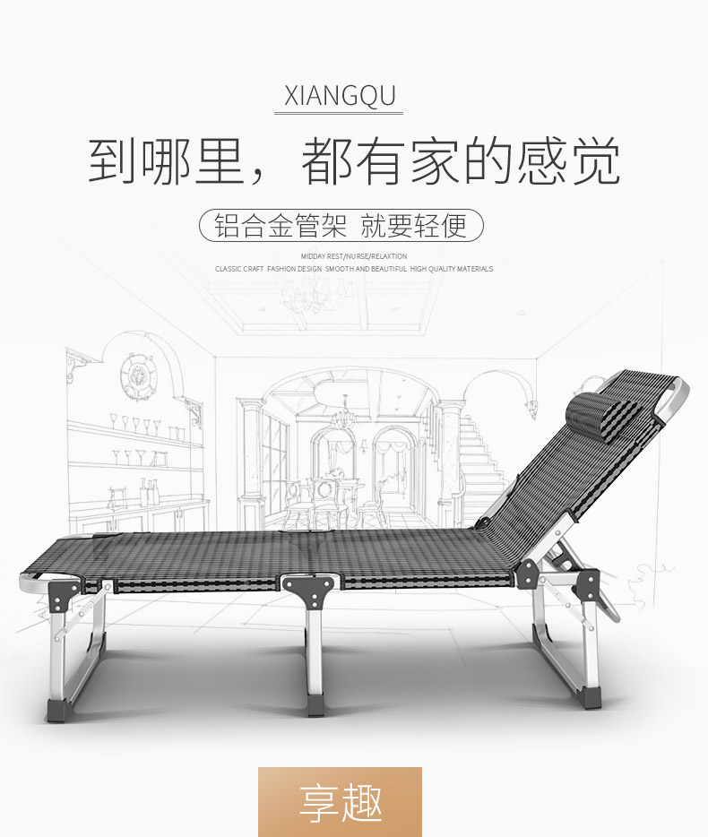 商品名称:享趣 铝合金管折叠床午休床单人床办公室夏天午睡床便捷躺椅