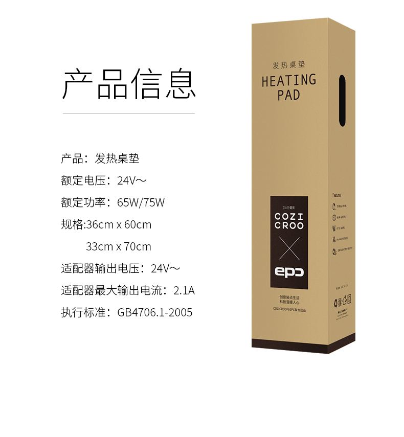 商品名称:EPC 原创暖桌垫 加热电脑桌垫24V发热鼠标垫 超大办公桌学生电热垫