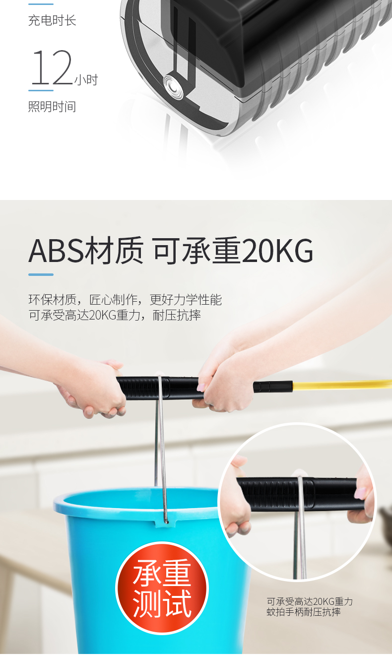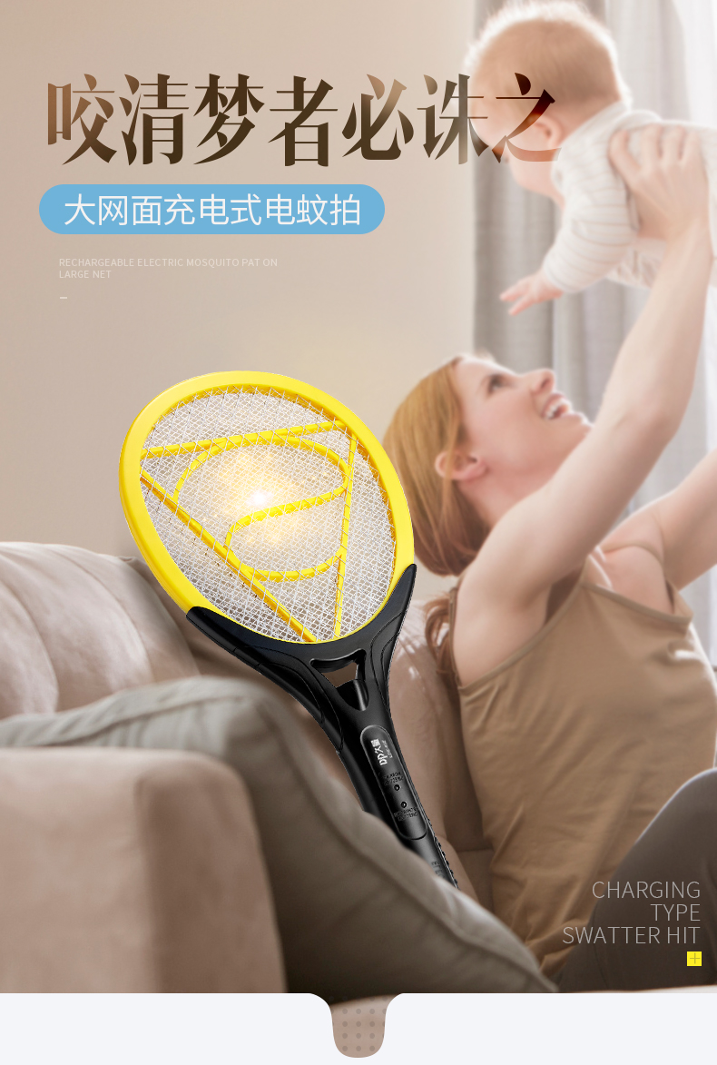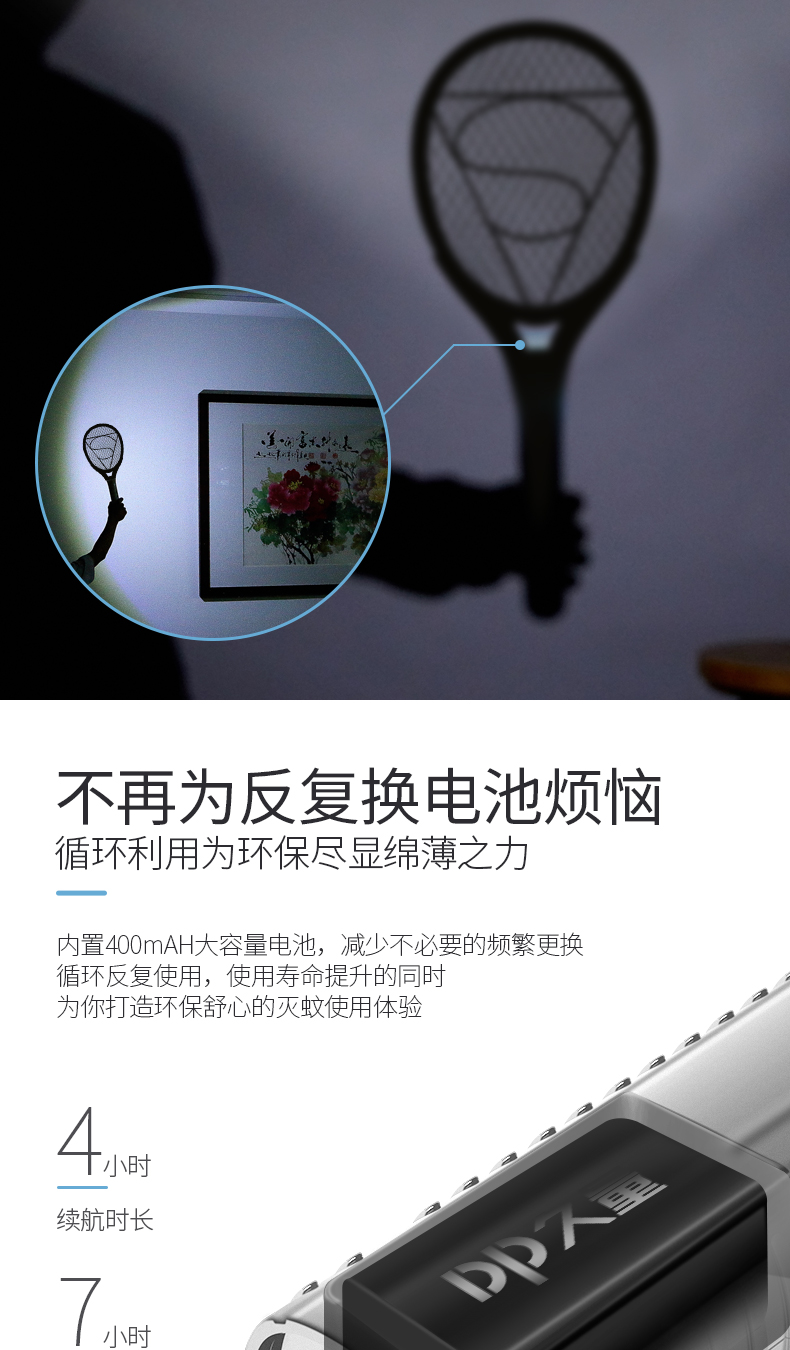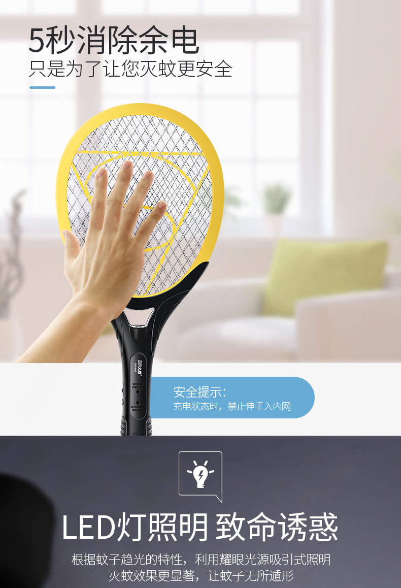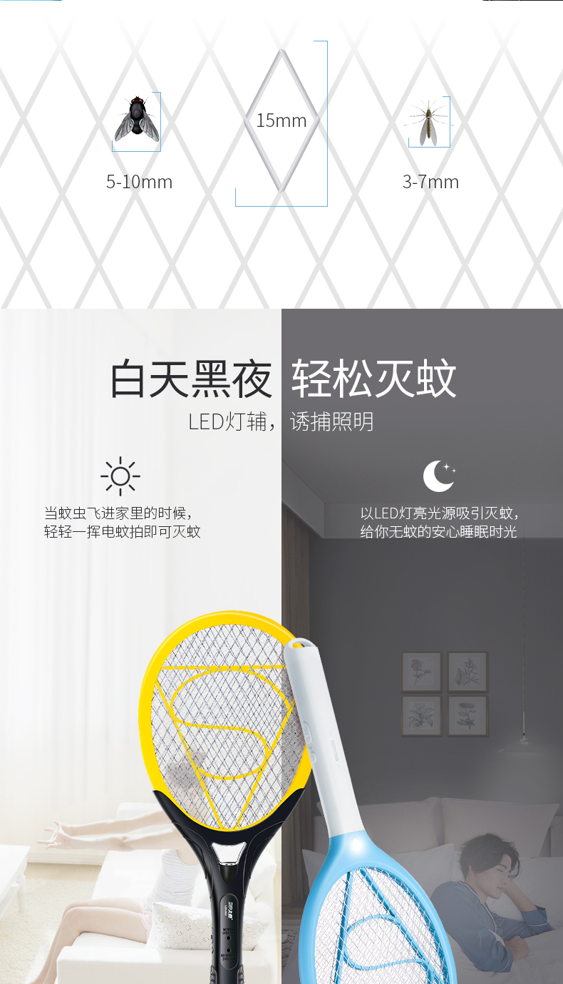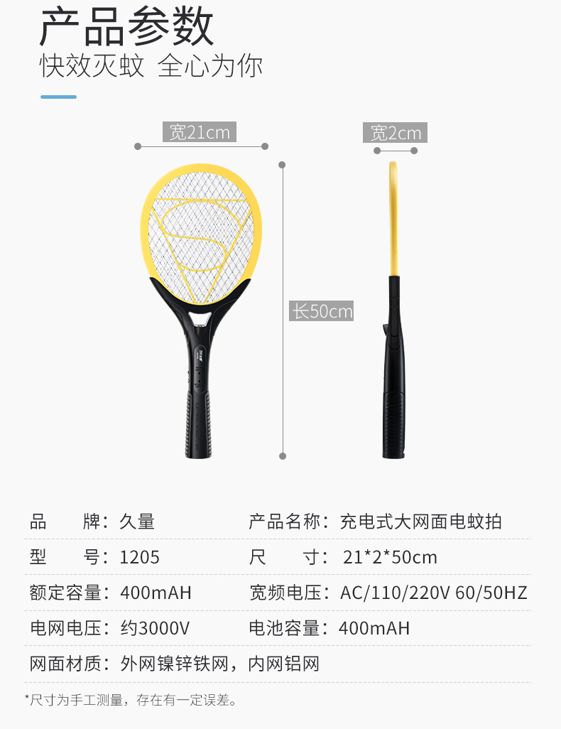 商品名称:久量/DP 电蚊拍可充电电池式家用LED灯苍蝇拍大号网面强力电灭蚊子拍