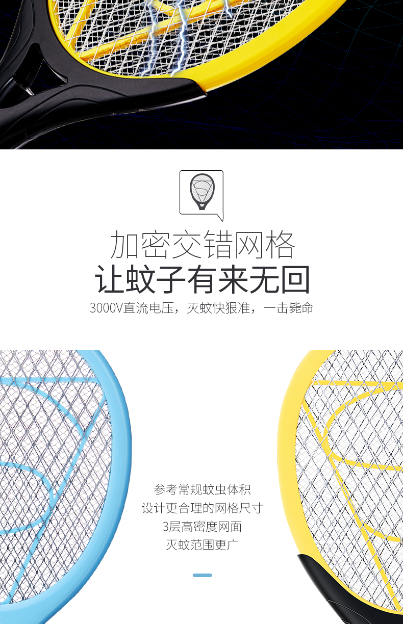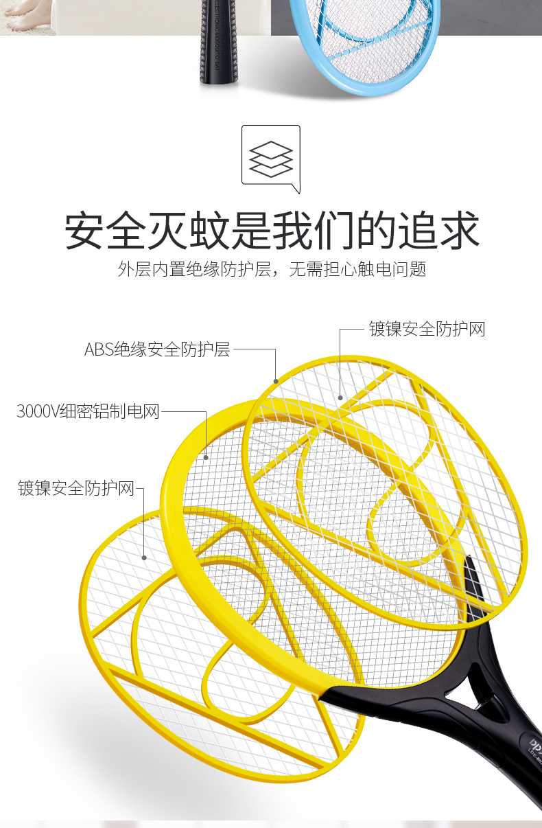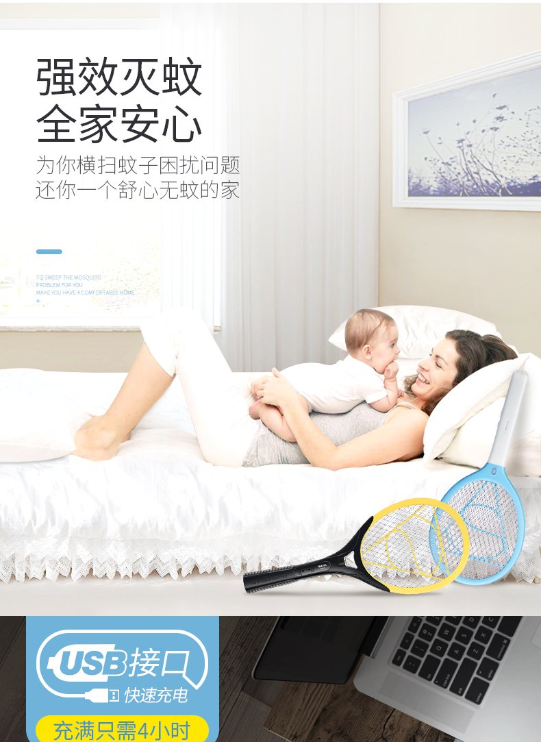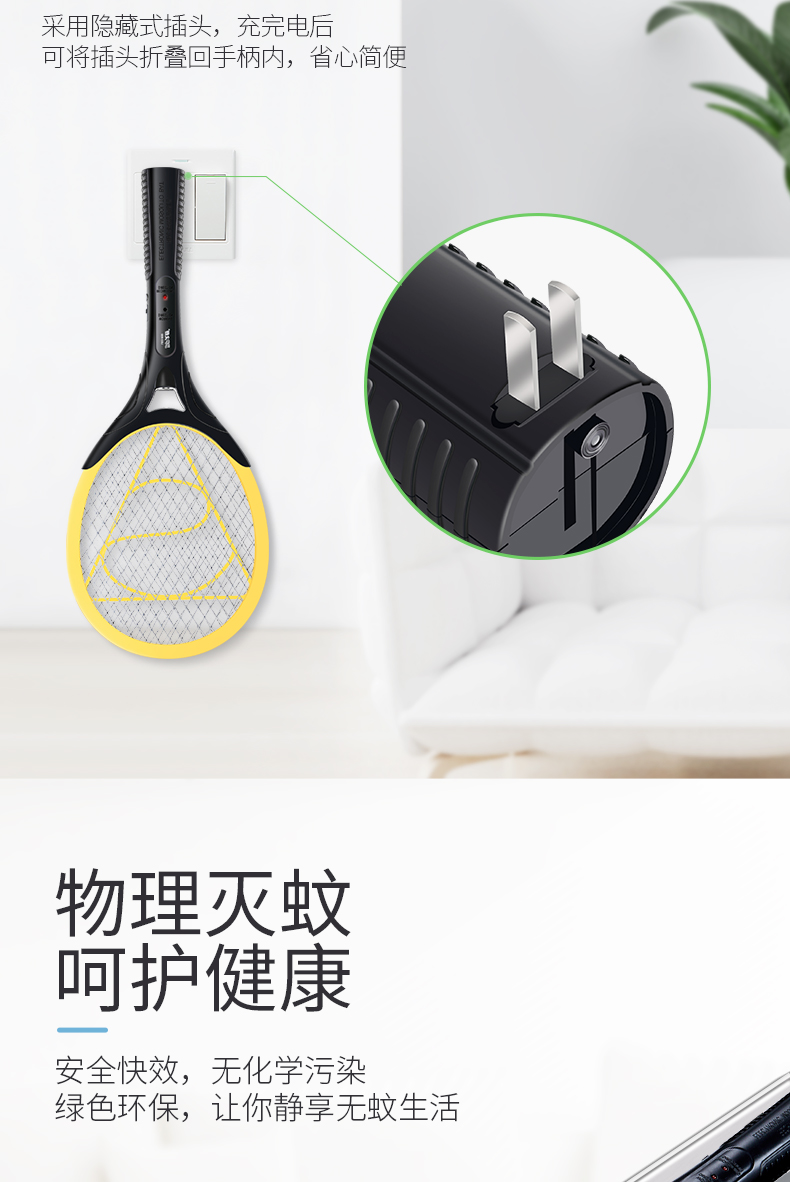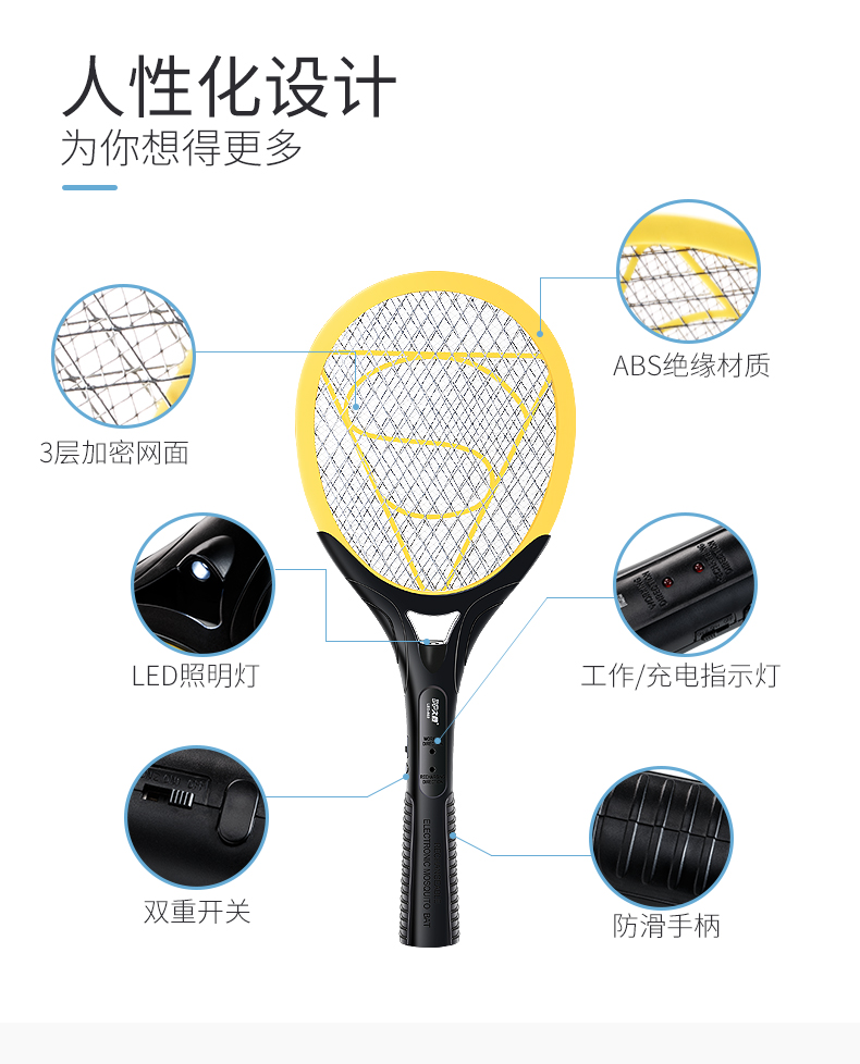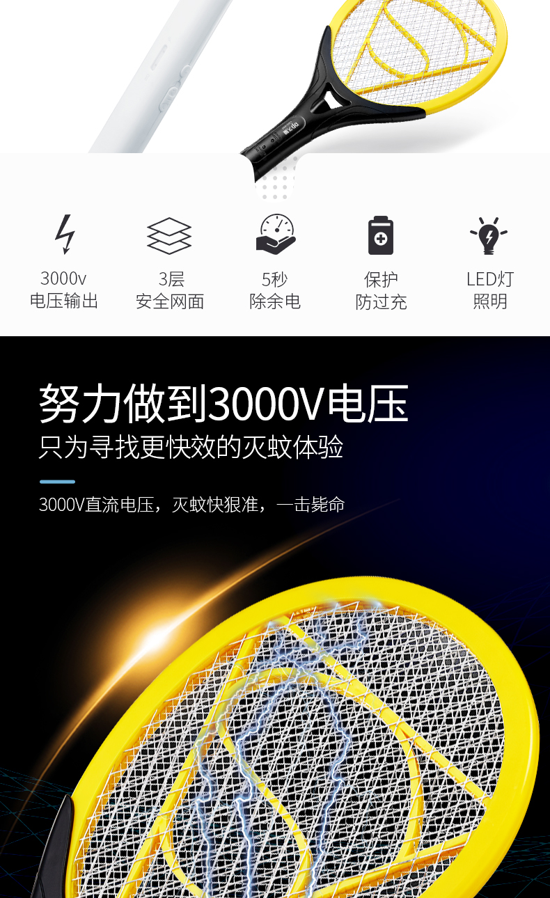 商品名称:久量/DP 电蚊拍可充电电池式家用LED灯苍蝇拍大号网面强力电灭蚊子拍