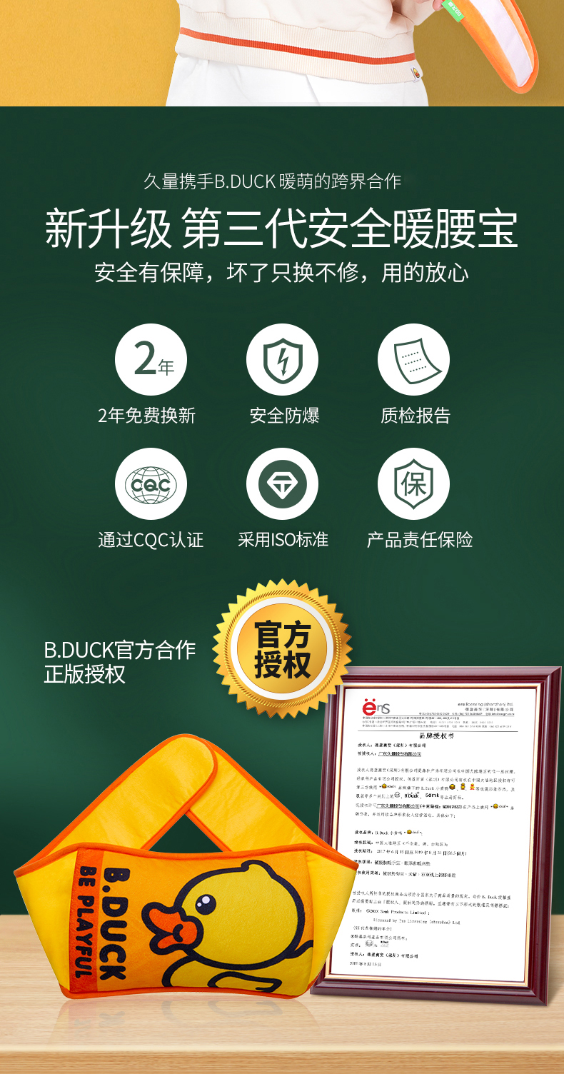 商品名称:久量/DP B.DUCK(小黄鸭)腰带款电暖袋暖手宝热水袋DP-1804A/DP-1107B