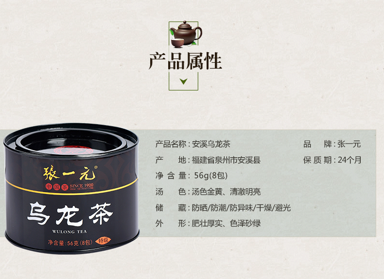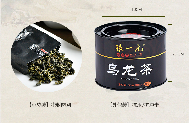 商品名称:张一元 茶叶 乌龙茶 56g(8包)