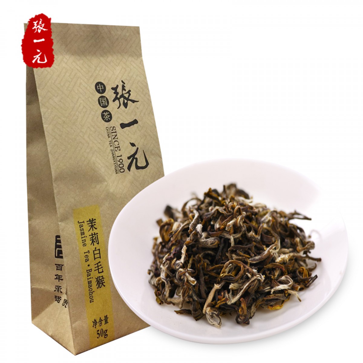 张一元 茉莉花茶 花茶茶叶 茉莉白毛猴 36元/50g