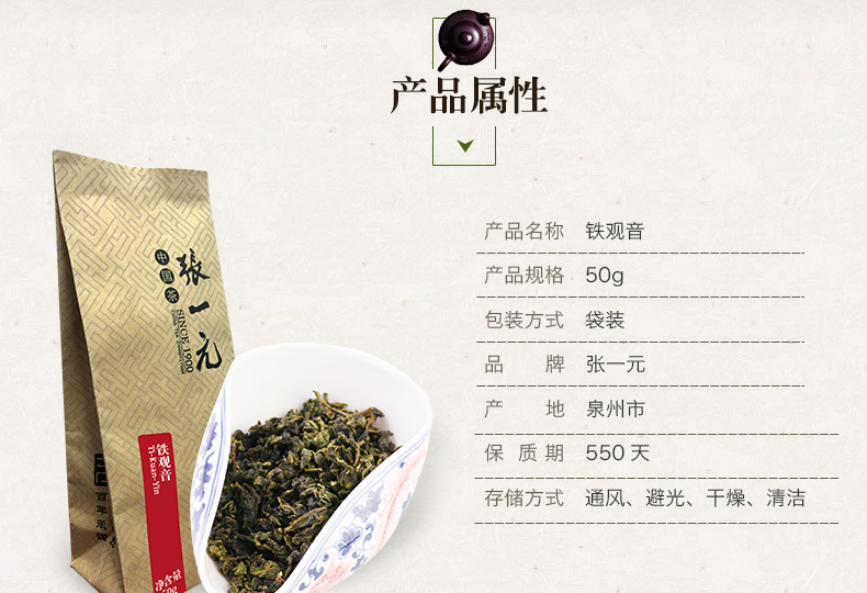 商品名称:张一元 乌龙茶 浓香型茶叶 铁观音茶叶 50元/50g