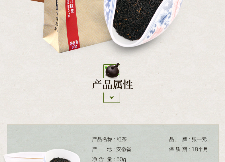 商品名称:张一元 红茶茶叶 祁门红茶 60元/50g