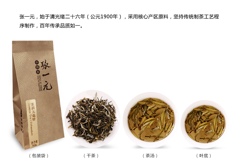 张一元 茉莉花茶 花茶 茶叶 茉莉大毫针 80元/50g