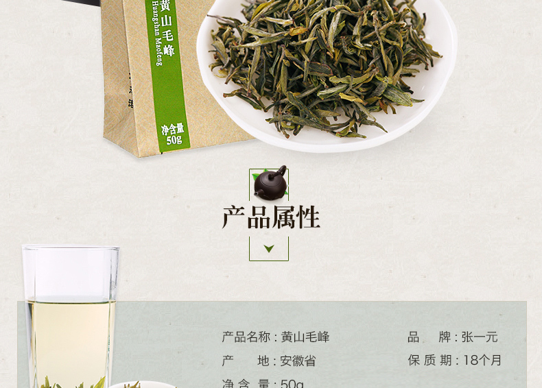 商品名称:张一元 春茶 黄山毛峰 88元/50g