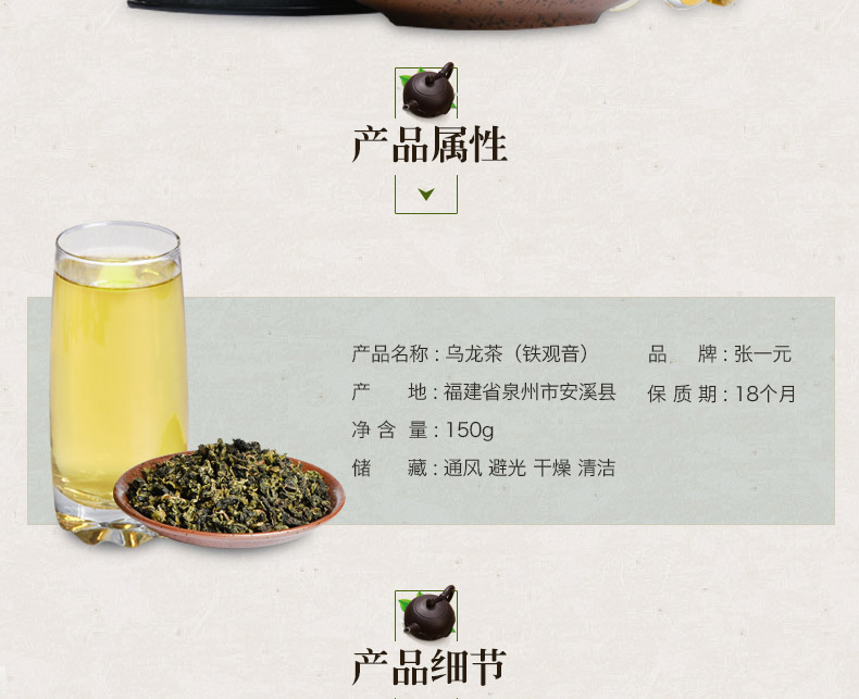商品名称:张一元 铁观音乌龙茶 浓香 新茶 罐装150g 尚品系列
