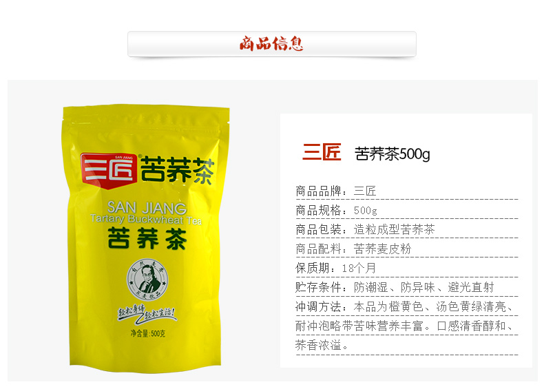 商品名称:三匠 四川凉山黄苦荞茶500g*2袋