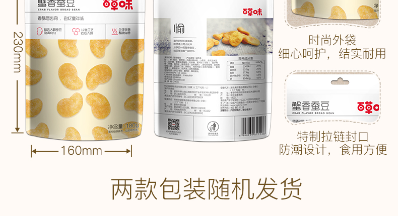 商品名称:百草味 休闲零食坚果炒货蟹香蚕豆180g兰花豆豆类食品休闲小吃年货