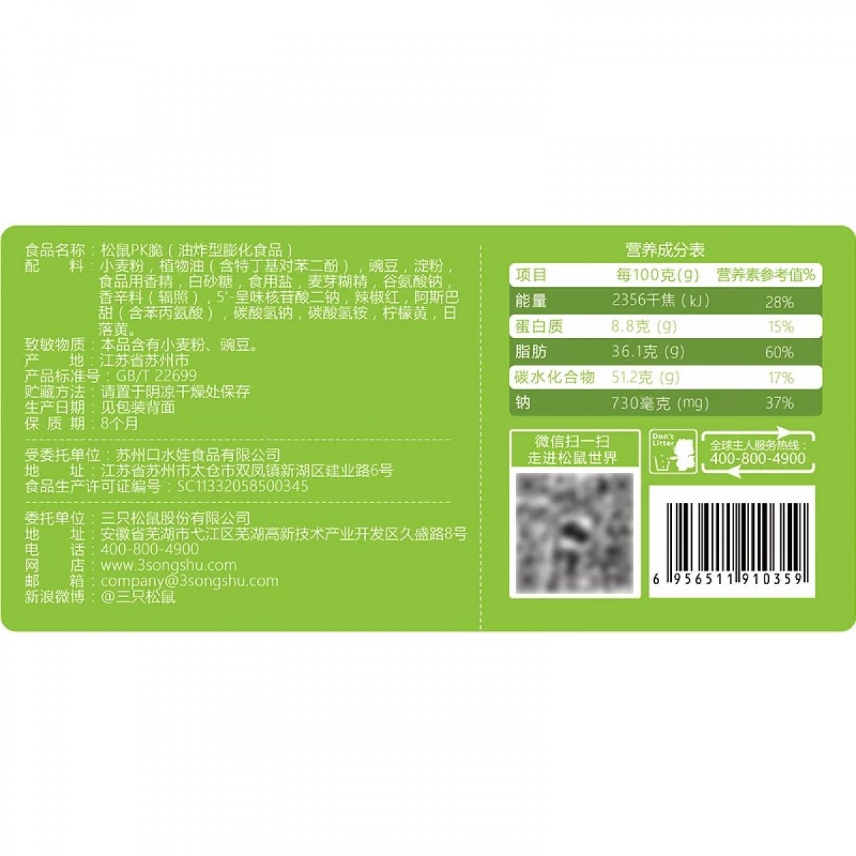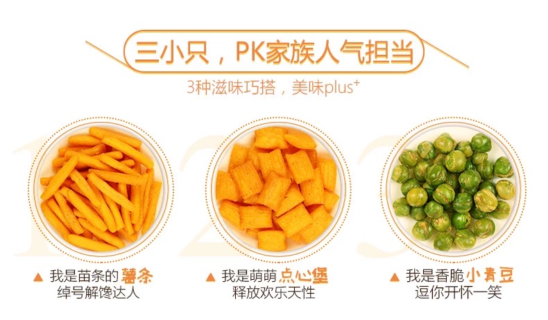 商品名称:三只松鼠 pk脆零食松鼠pk脆105g原香味混合果仁薯条什锦豆子马铃薯