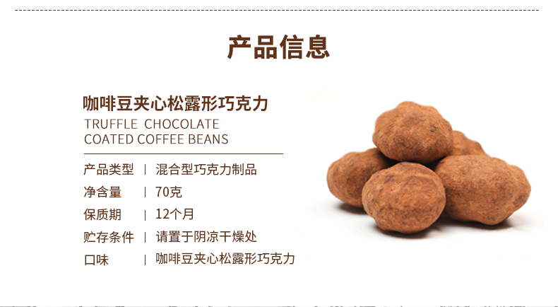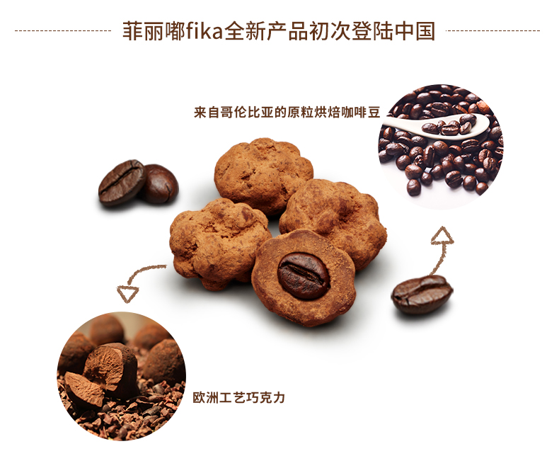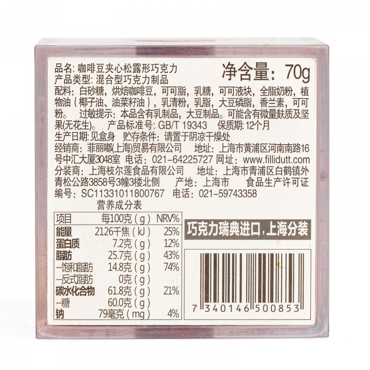 商品名称:fillidutt/菲丽嘟 fika 咖啡豆夹心松露形巧克力 时尚零食 新上市