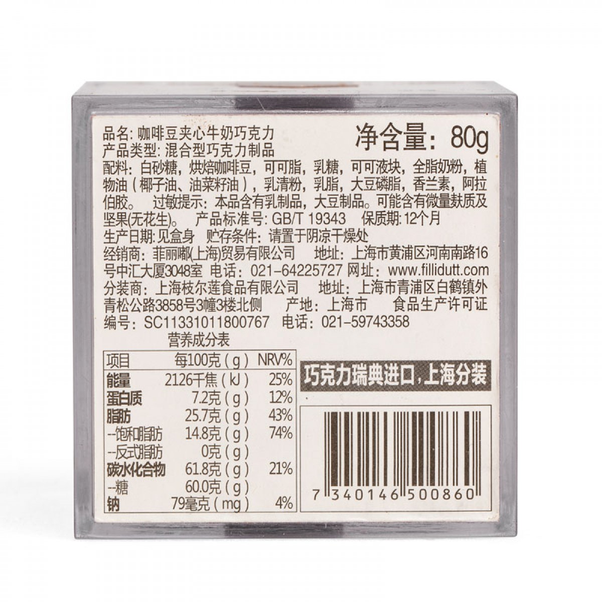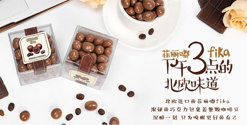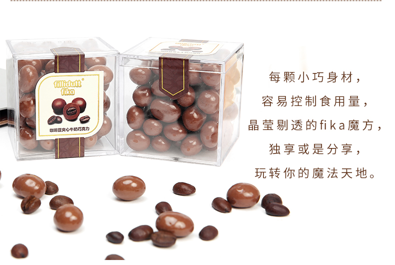 商品名称:fillidutt/菲丽嘟 fika 咖啡豆夹心牛奶巧克力盒装80g 新品上市