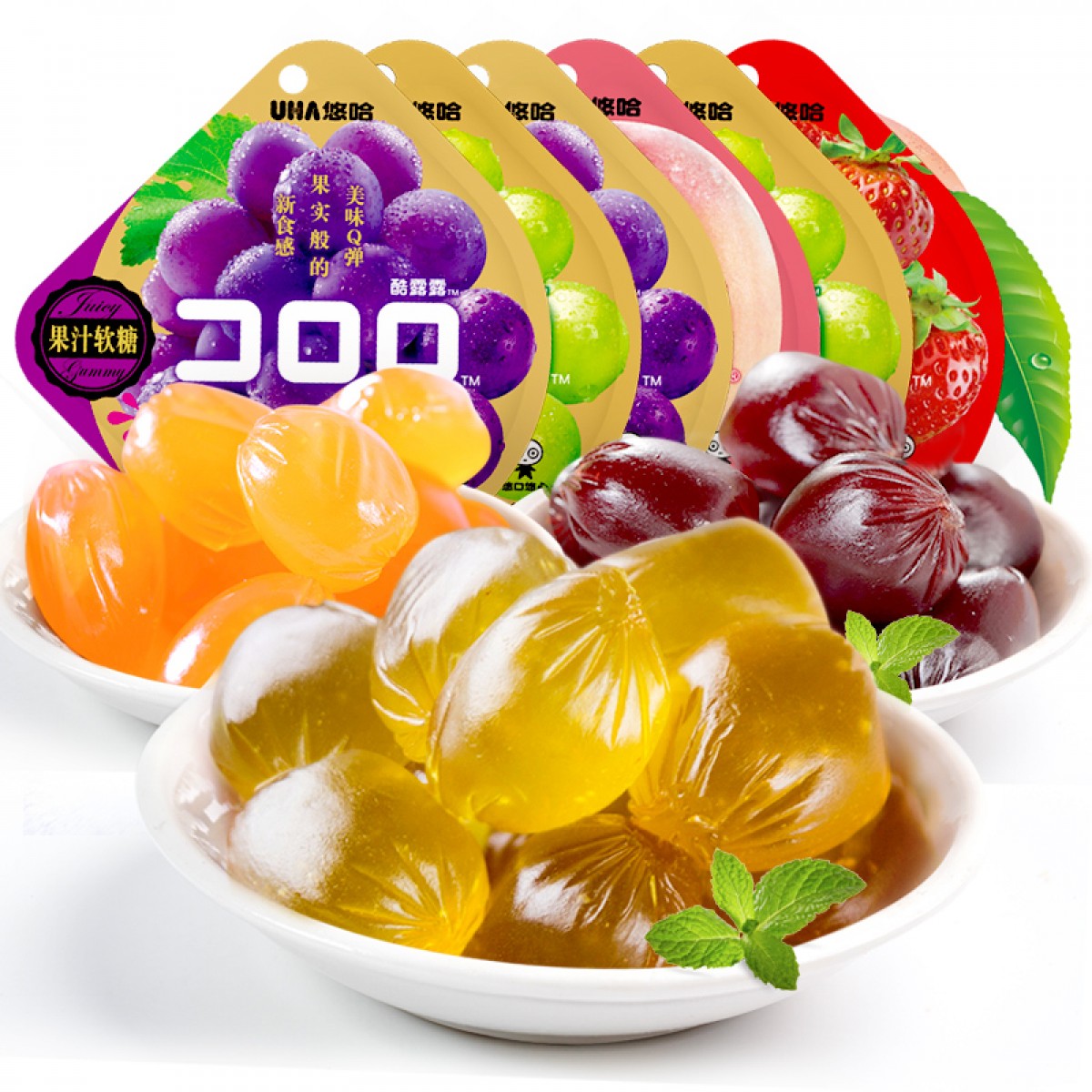 商品名称:UHA/悠哈 酷露露水果汁软糖52g*6包 葡萄草莓水蜜桃味 QQ糖休闲零食