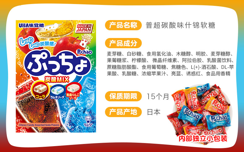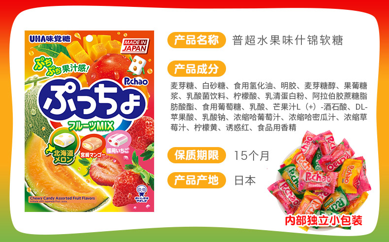 商品名称:UHA/悠哈 PUCHAO普超软糖90g*3袋组合装 日本进口悠哈味觉糖水果味软糖
