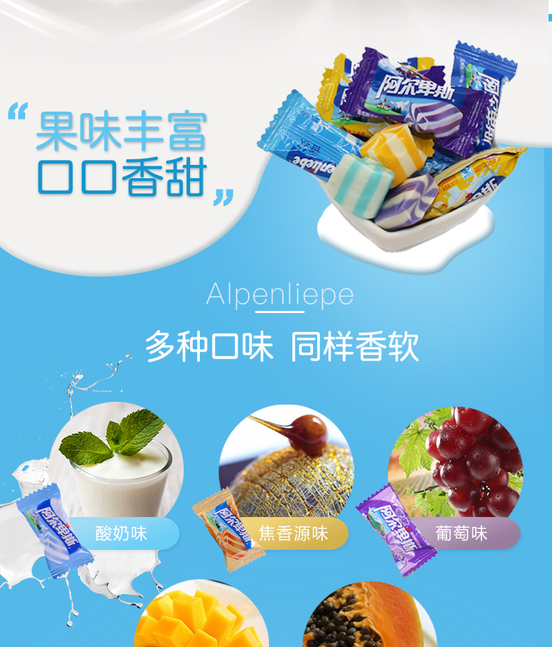 阿尔卑斯 软糖500g散装香软牛奶混合口味婚庆喜糖零食水果糖果