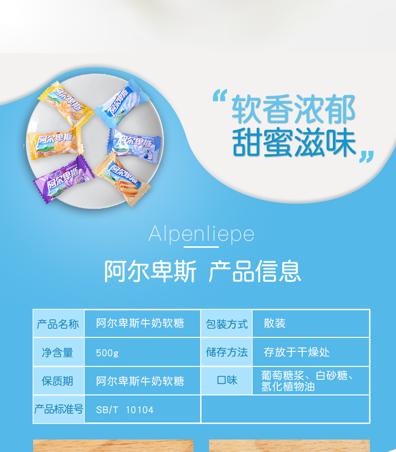 商品名称:阿尔卑斯 软糖500g散装香软牛奶混合口味婚庆喜糖零食水果糖果