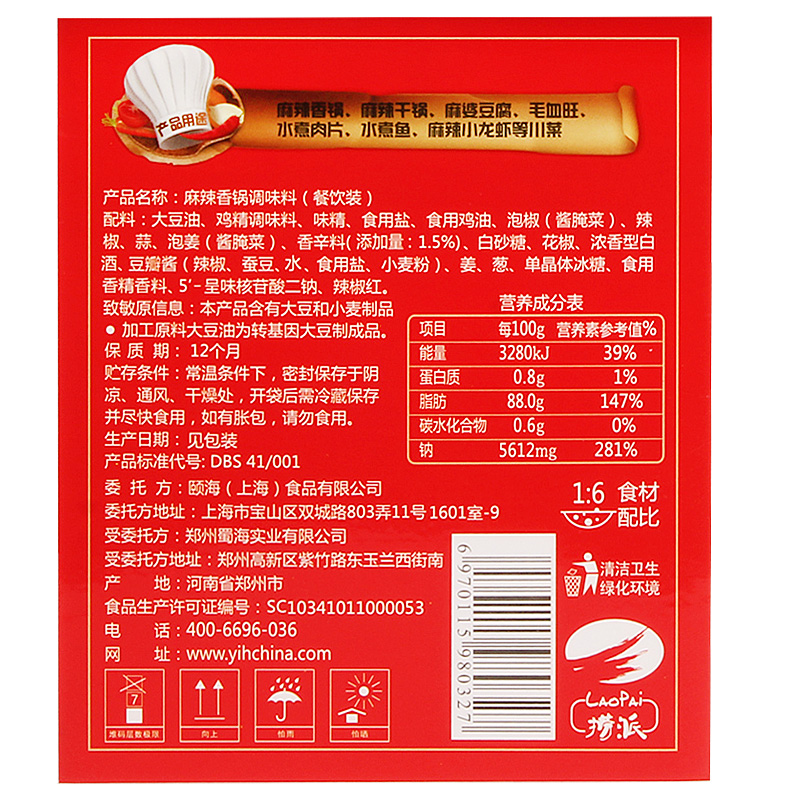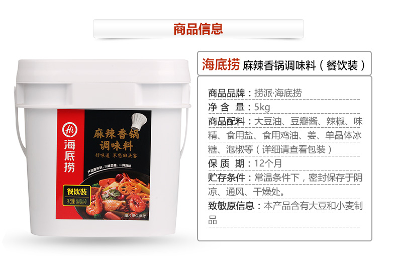 商品名称:海底捞 麻辣香锅5KG调味料桶装餐饮装 干锅火锅底料四川调味料