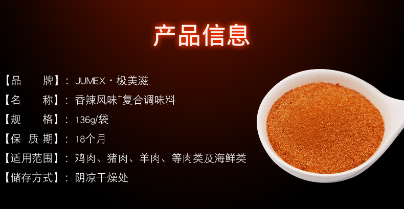 商品名称:极美滋 新奥尔良烤鸡翅腌料香辣136g KFC炸鸡烤肉料 烧烤调料粉