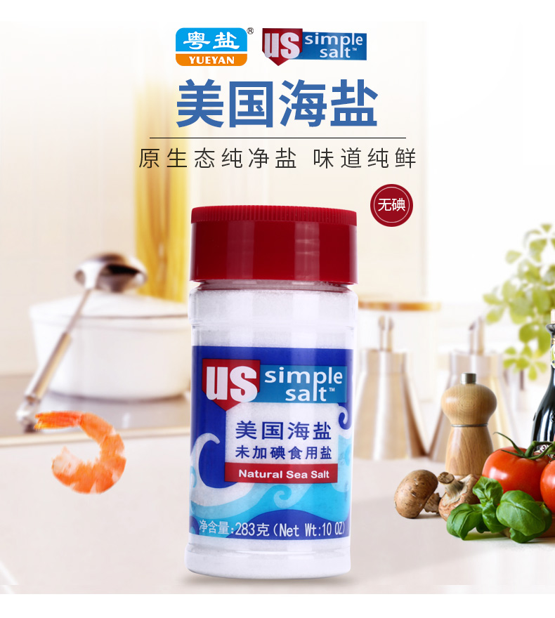 商品名称:粤盐牌 283克 未加碘 美国海盐 高端进口调料盐
