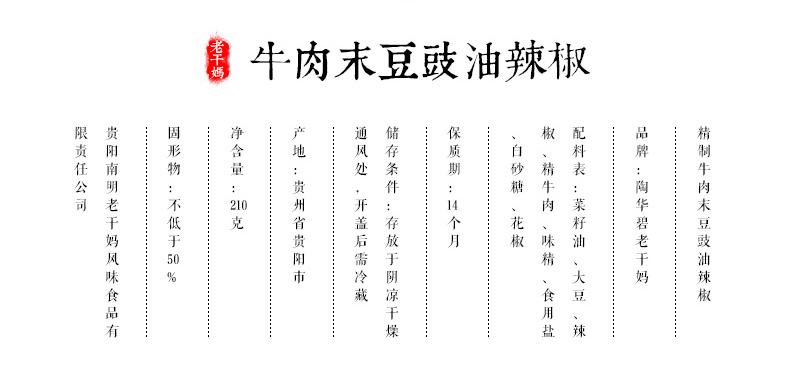 商品名称:老干妈 精制牛肉末豆豉油辣椒酱 210g*3下饭菜