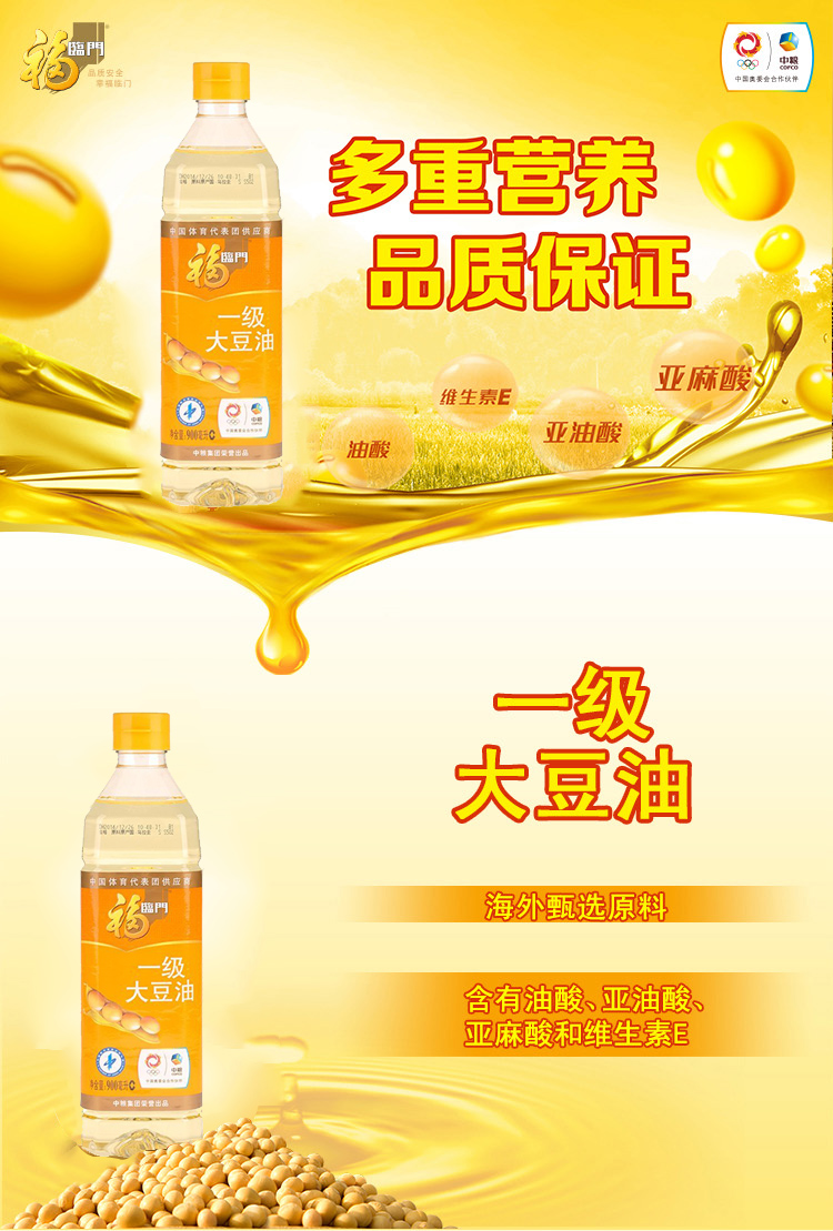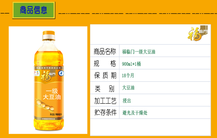 商品名称:福临门 一级大豆油900mL小瓶食用油烘焙蛋糕炒菜色拉油黄豆植物油
