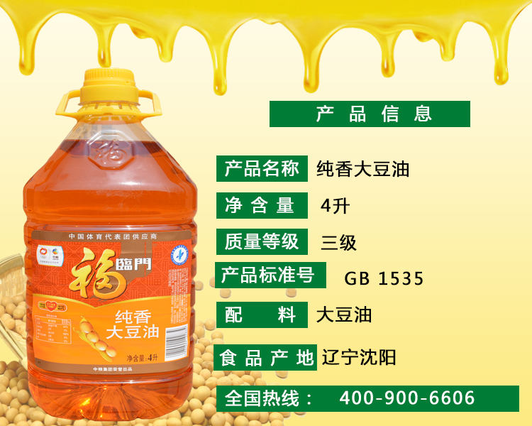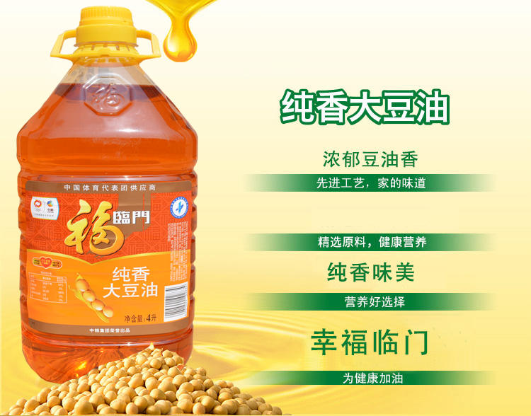 商品名称:福临门 纯香大豆油植物油4L黄色油黄豆油烧烤炒菜食用油