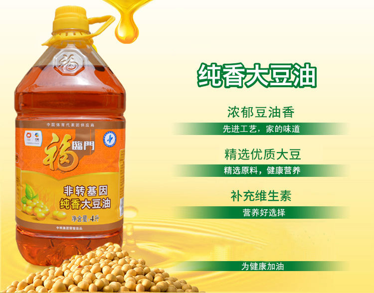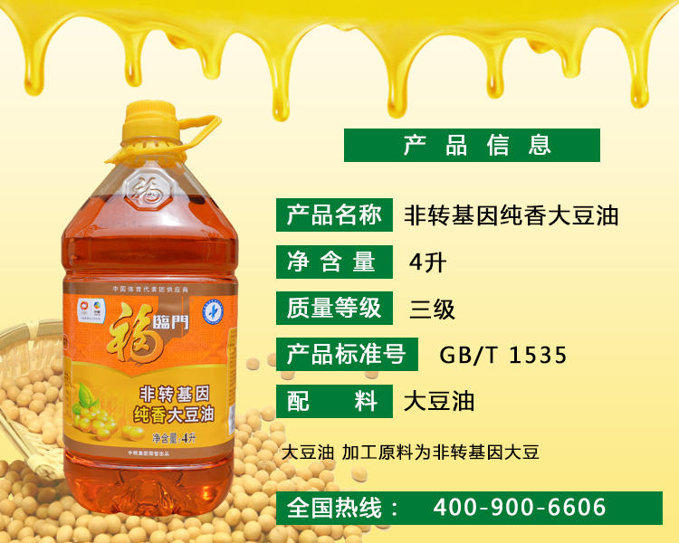 商品名称:福临门 非转纯香大豆油4L中粮福临门非转基因纯香大豆油4L桶装