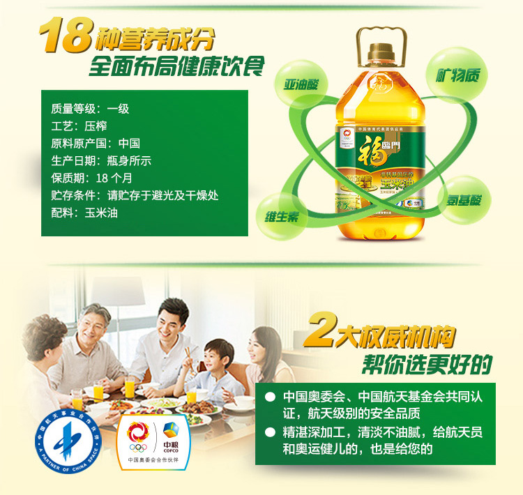 商品名称:福临门 玉米油4L非转基因植物油玉米胚芽油压榨食用油调和油