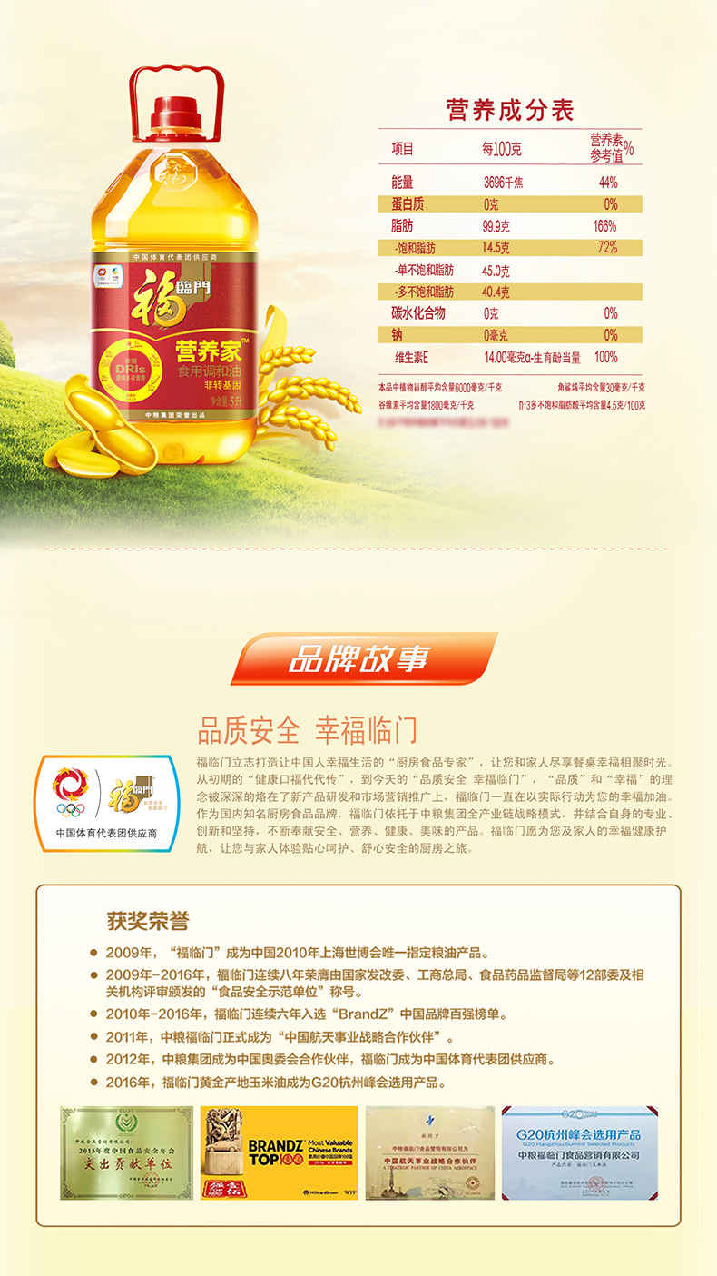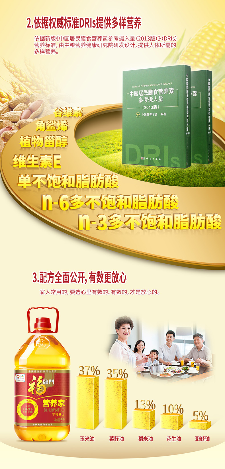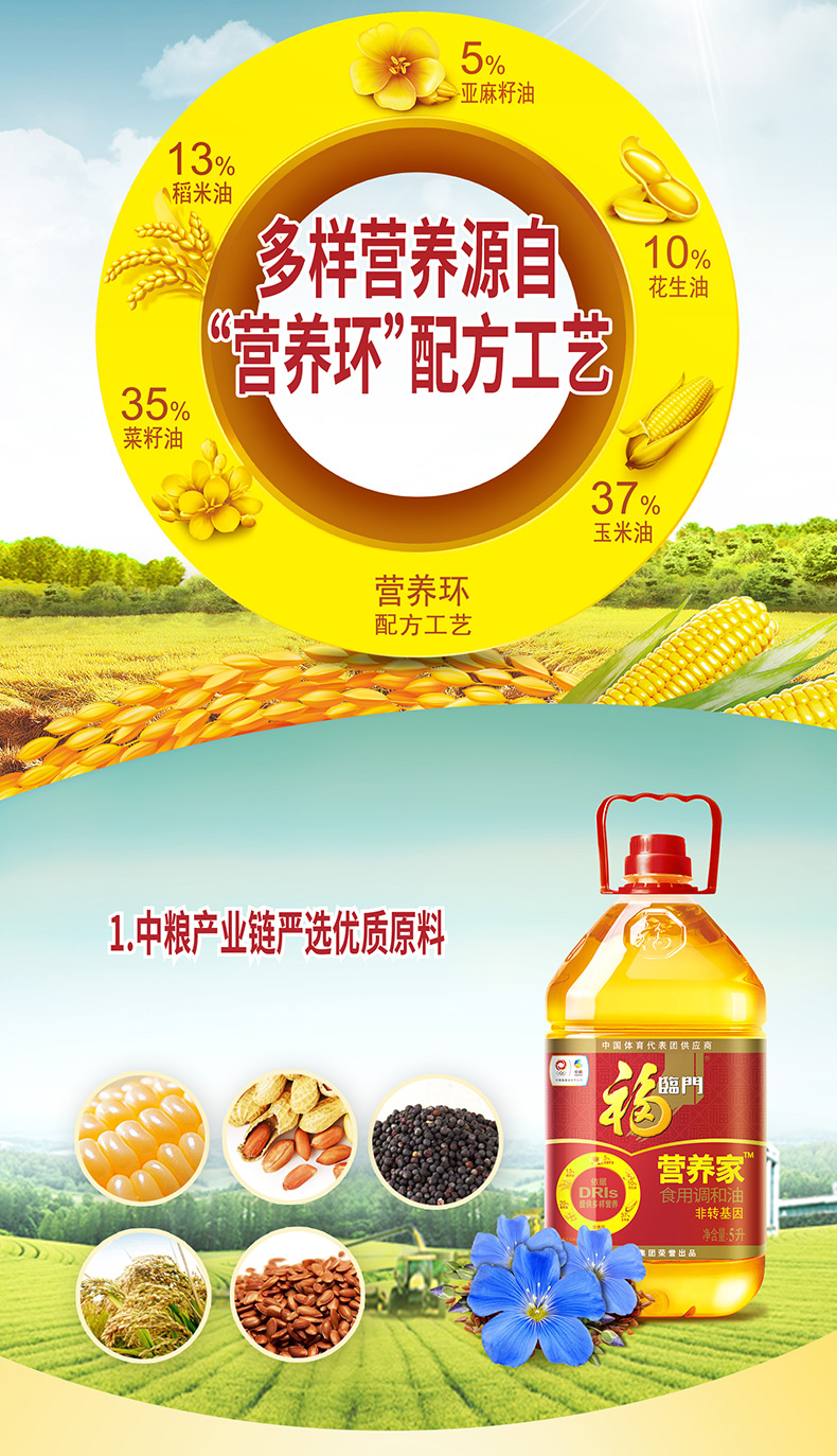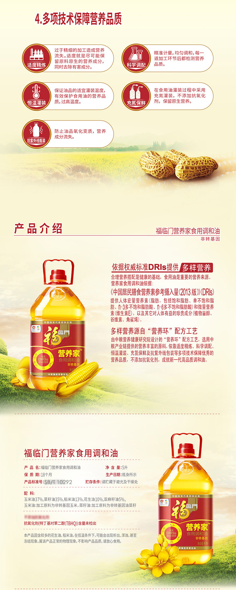 商品名称:福临门 营养家5L非转基因玉米菜籽油稻米油花生油亚麻籽油调和油