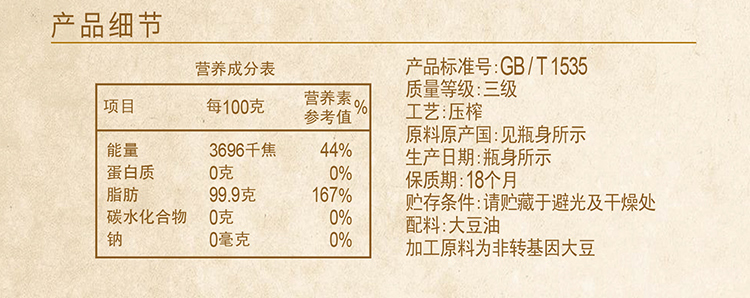 商品名称:福临门 非转基因老豆油5L 中粮物理压榨纯大豆油 东北笨榨纯黄豆油