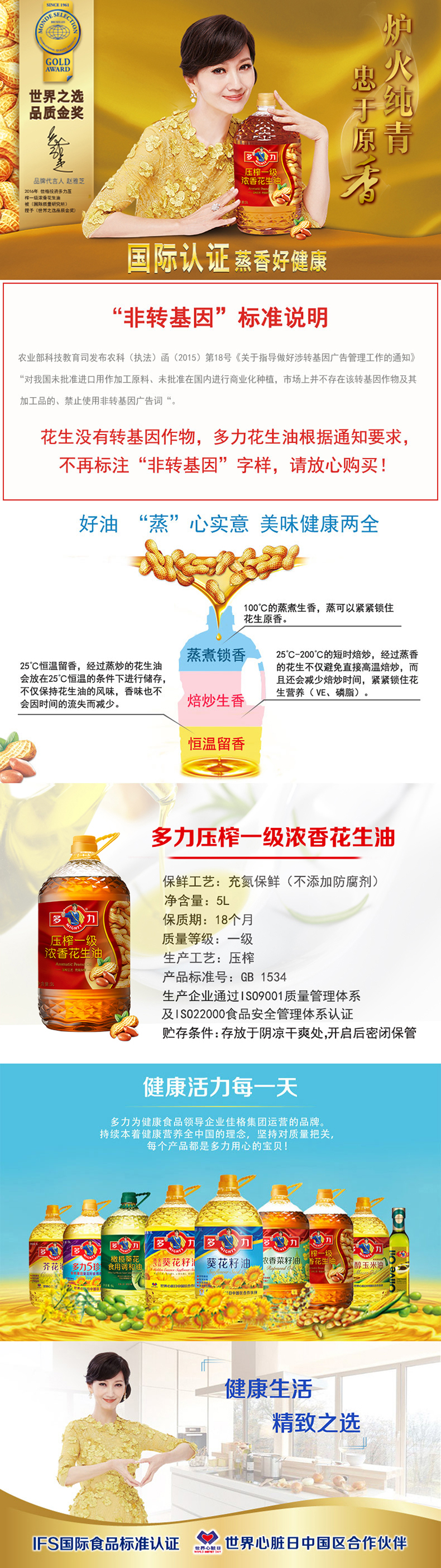 商品名称:多力 压榨一级浓香花生油 5L 物理压榨 食用油