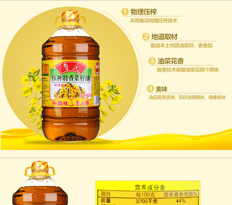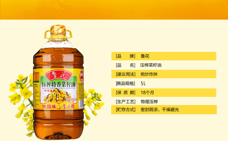 商品名称:鲁花 压榨特香菜籽油5L食用油植物油家庭厨房食用油油大桶粮油