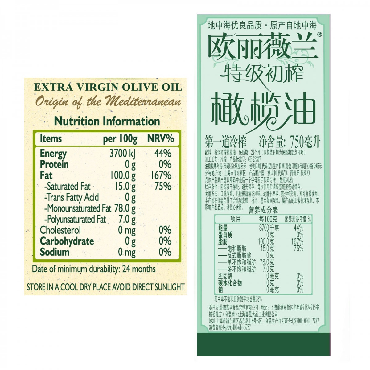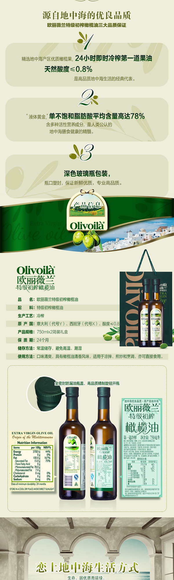 商品名称:欧丽薇兰 特级初榨橄榄油750ml*2简装礼盒进口橄榄油礼盒食用油