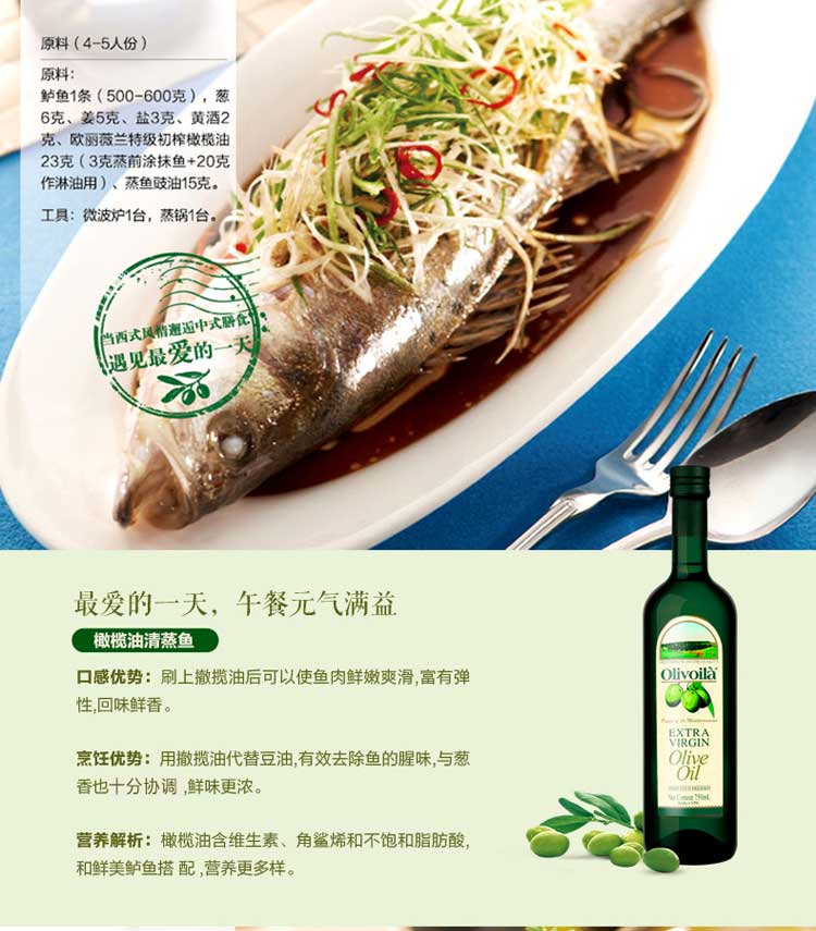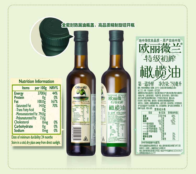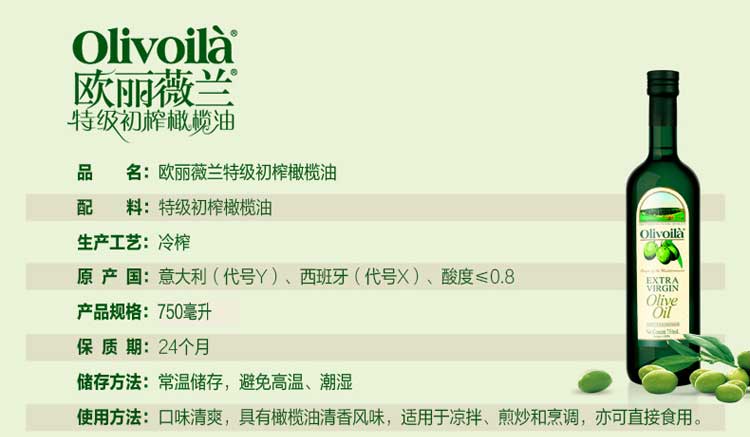 商品名称:欧丽薇兰 特级初榨橄榄油750ml 食用炒菜烹饪调味油