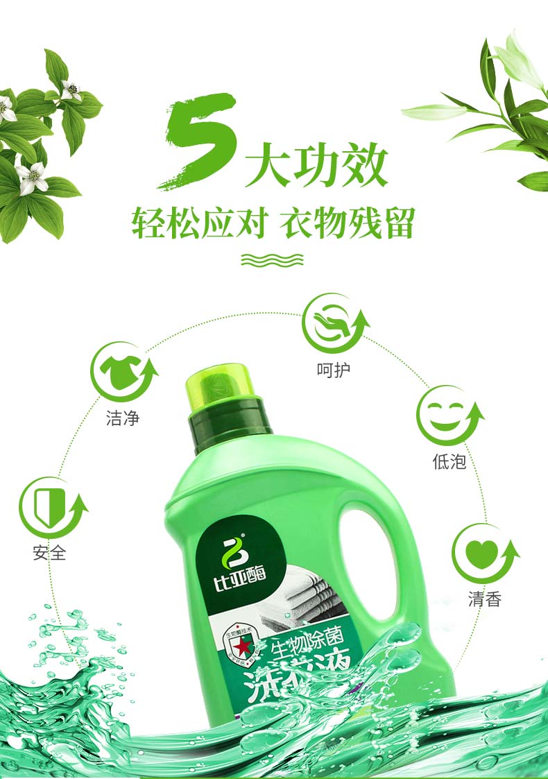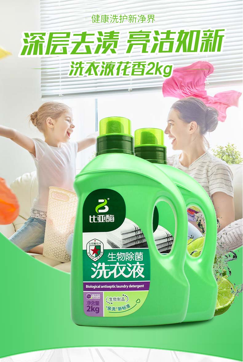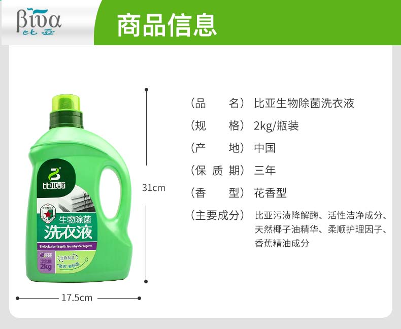 商品名称:比亚(biva)去污除菌手洗机洗生物酶降解天然洗衣液 花香2KG*2瓶