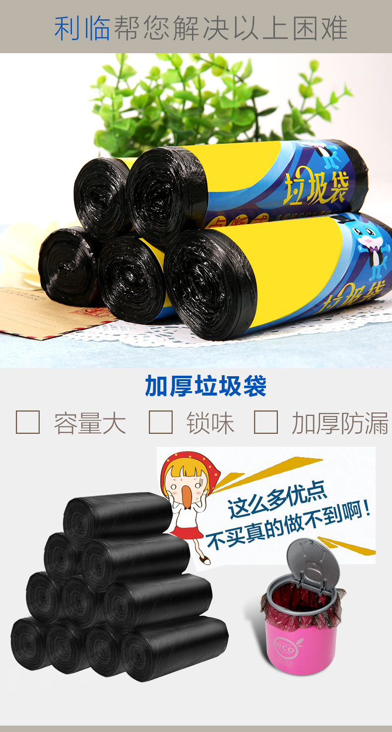 商品名称:利临 垃圾袋10卷加厚新料厨房卫生间家用塑料袋中大号45*55cm 90只 XT-040